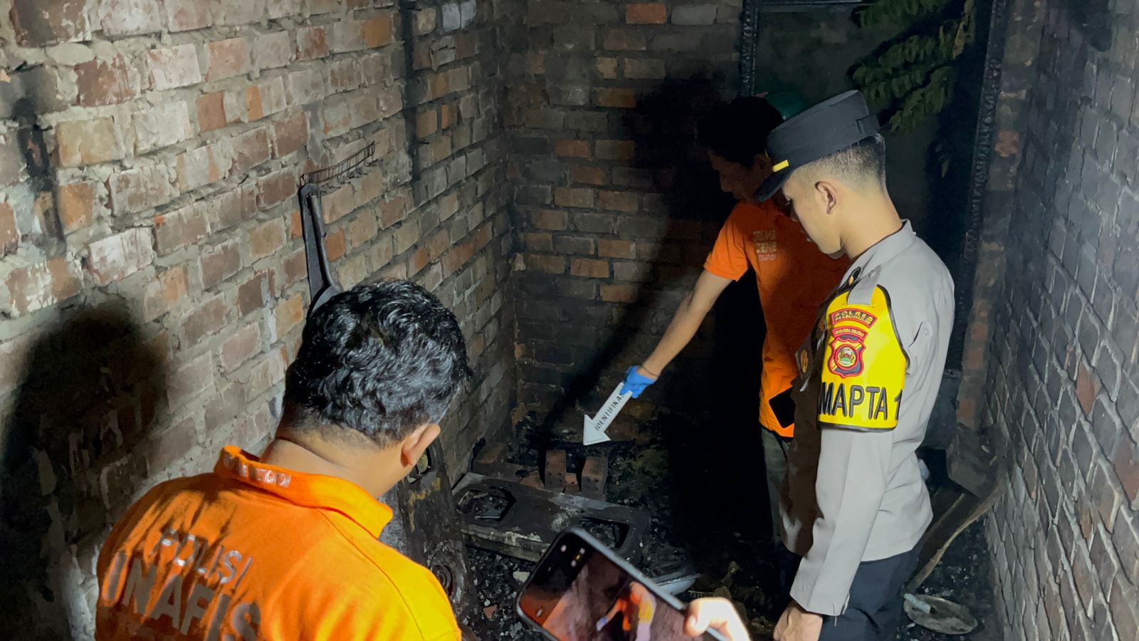 Petugas kemudian mengamankan tempat kejadian, mencatat keterangan saksi, serta mengumpulkan data dan barang bukti yang diperlukan.