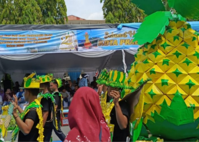 PRABUMULIHPOS.DISWAY.ID - Penampilan SMA Negeri 1 Prabumulih membuat penonton terpukau pada kegiatan karnaval Senin, 19 Agustus 2024.